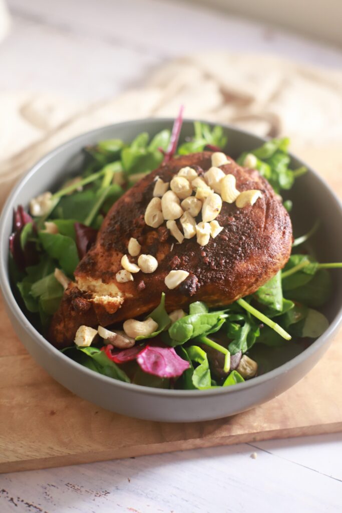 Anakardžiai puikiai tinka, bet gali keisti ir kitais mėgstamais riešutais: graikiniais, migdolais, skrudintais žemės riešutais. Traškus akcentas čia būtinas!